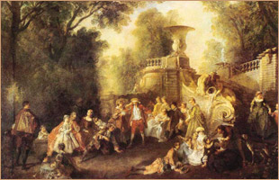Фридрих II поместил в «Малой галерее» приобретенные лично им произведения особо почитаемых им мастеров – Ватто, Ланкре и Патера, прекрасно иллюстрирующие галантный век рококо.